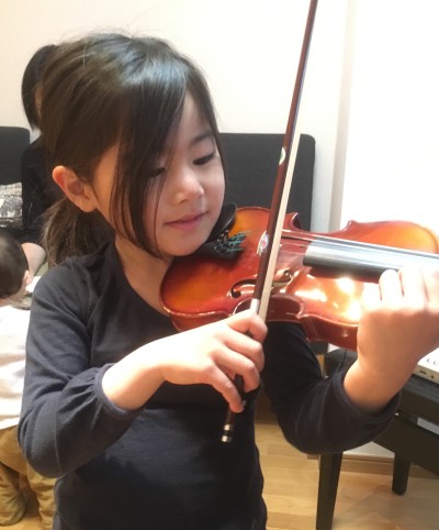 4歳(もうすぐ5歳)です。彼女は下に妹さんが2人いてレッスンにもみんなで一緒にやって来ます。それぞれにそれぞれの主張がありお母さまも大変そうですが、いつもきちんと連れていらしていて頭が下がります。