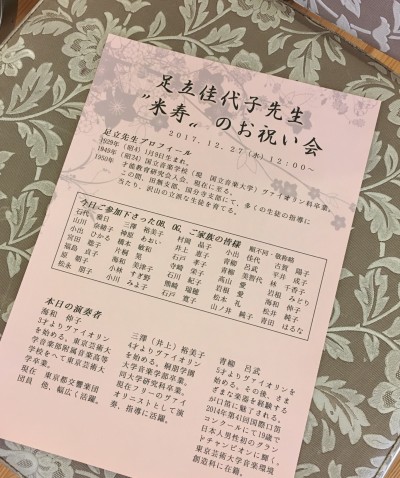 今日はスズキ・メソードの創成期から指導に携わっていらした私の親先生の米寿のお祝い会でした。