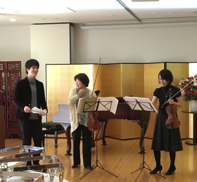 先生のところからはたくさんのプロの演奏家が出ていて演奏者の候補は何人もいたのですが、今回はお子さんが現役生徒であるMさんと同時期に支部にいたKさんがデュオを、また口笛チャンピオンのAくんの口笛をという事になりました。